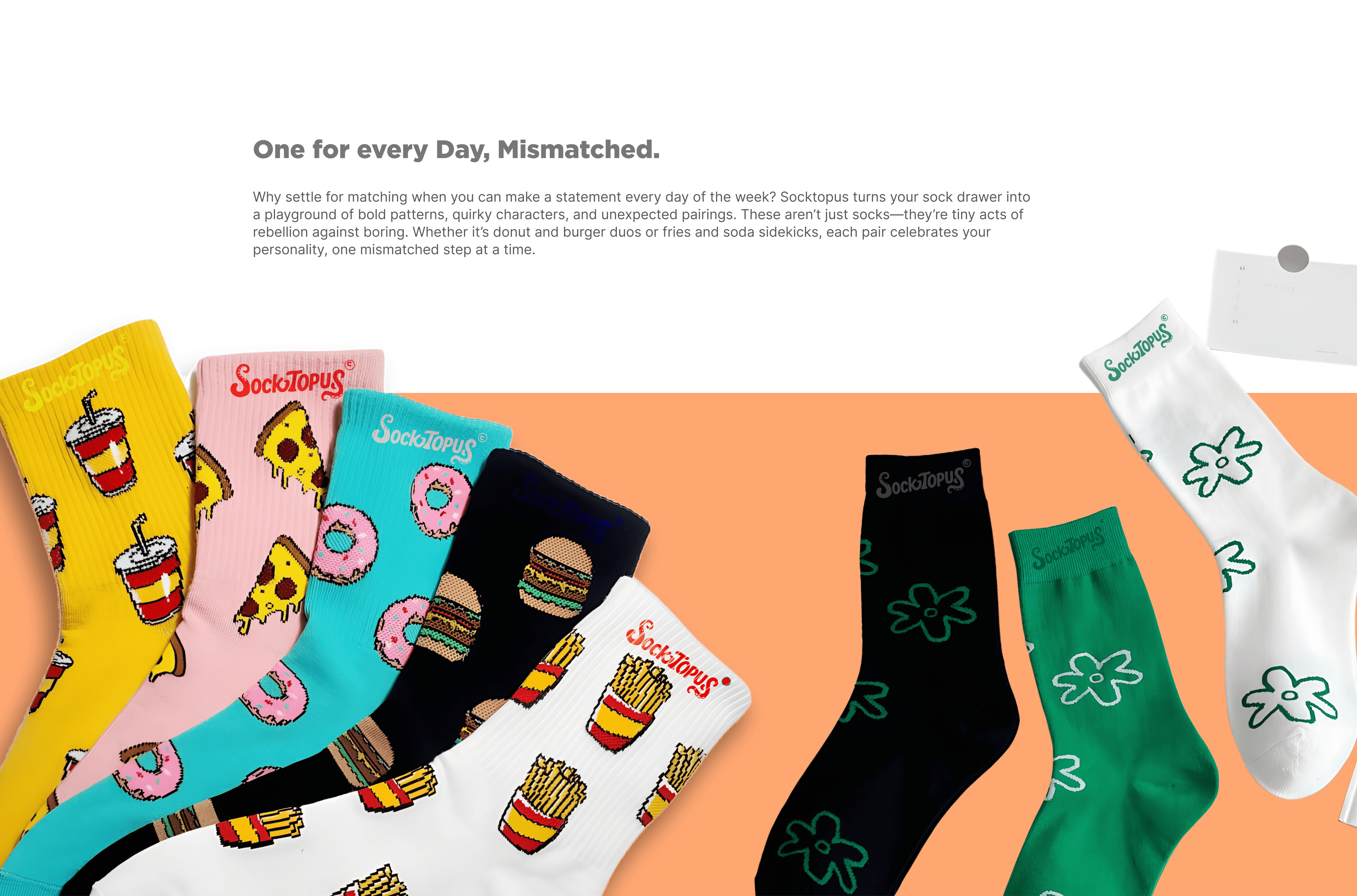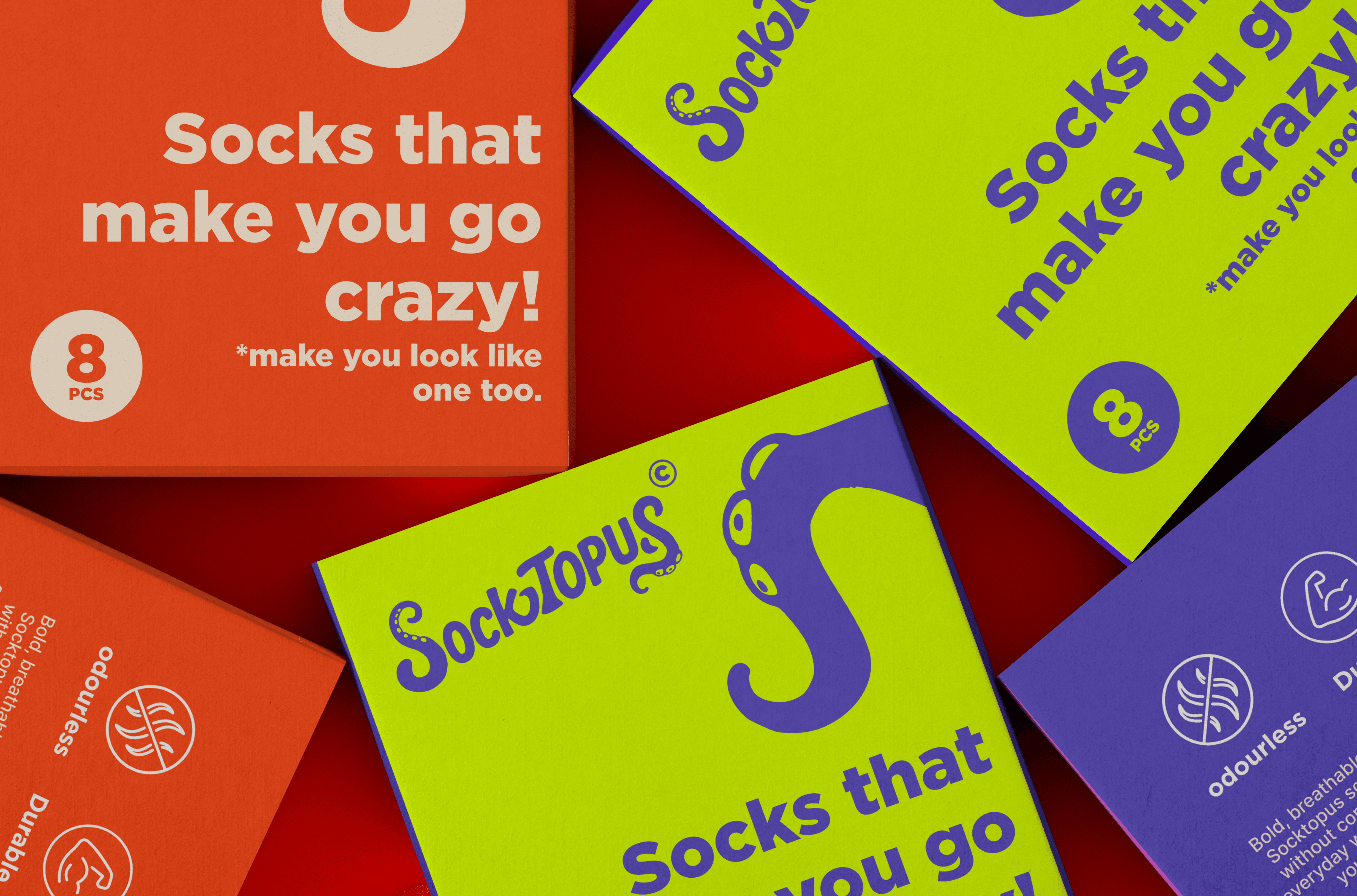 Branding and identity Design for Socktopus, born in 2024, is a quirky sock brand with one goal , to rescue socks from the dark corners of your laundry basket and bring them into the spotlight.